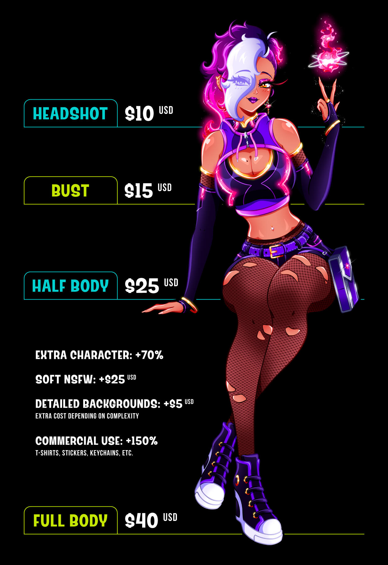Commercial use (t-shirts, stickers, keychains, etc.): +150% of base price.